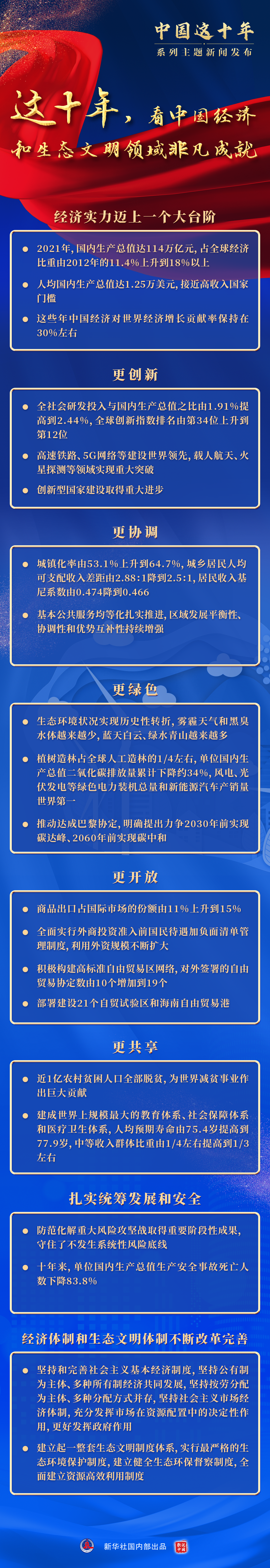 回望过去十年,中国经济和生态文明领域建设与改革取得哪些重要成就?交出一份怎样的“非凡答卷”?中共中央宣传部12日举行“中国这十年”系列主题新闻发布会介绍相关情况,干货信息一图速览↓↓↓