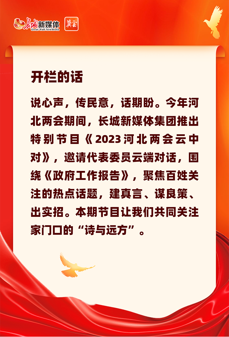 本期节目,长城新媒体记者康宁对话河北省人大代表、石家庄食草堂文化产业园负责人牛睿仪,河北省政协委员、河北东创文化传媒有限公司董事长韩佳,河北省政协委员、河北古顺酿酒股份有限公司董事长郭强柳,一起畅想河北文旅产业高质量发展新场景。
