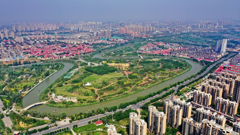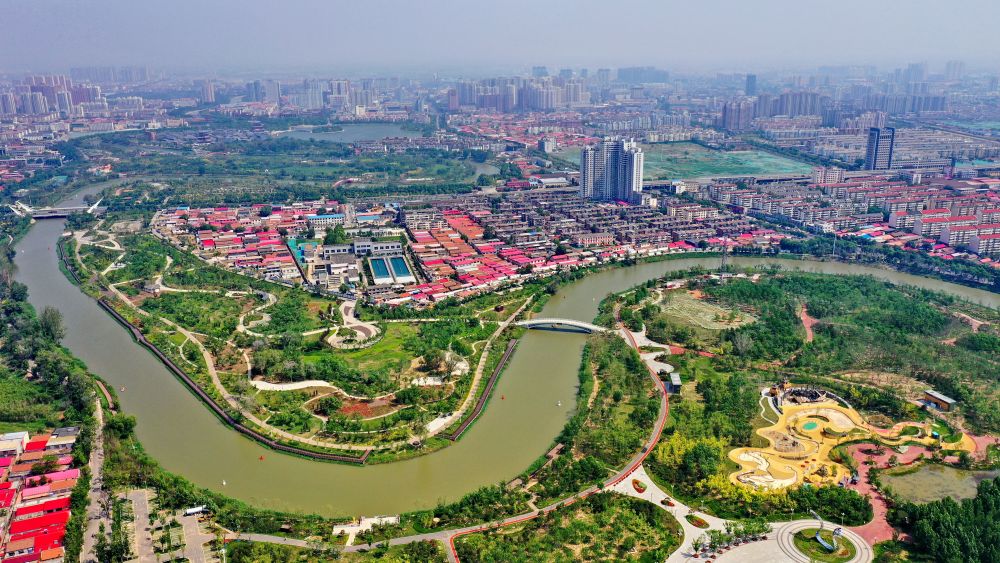 ↑沧州城市景观(5月15日摄,无人机照片)。