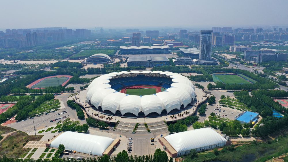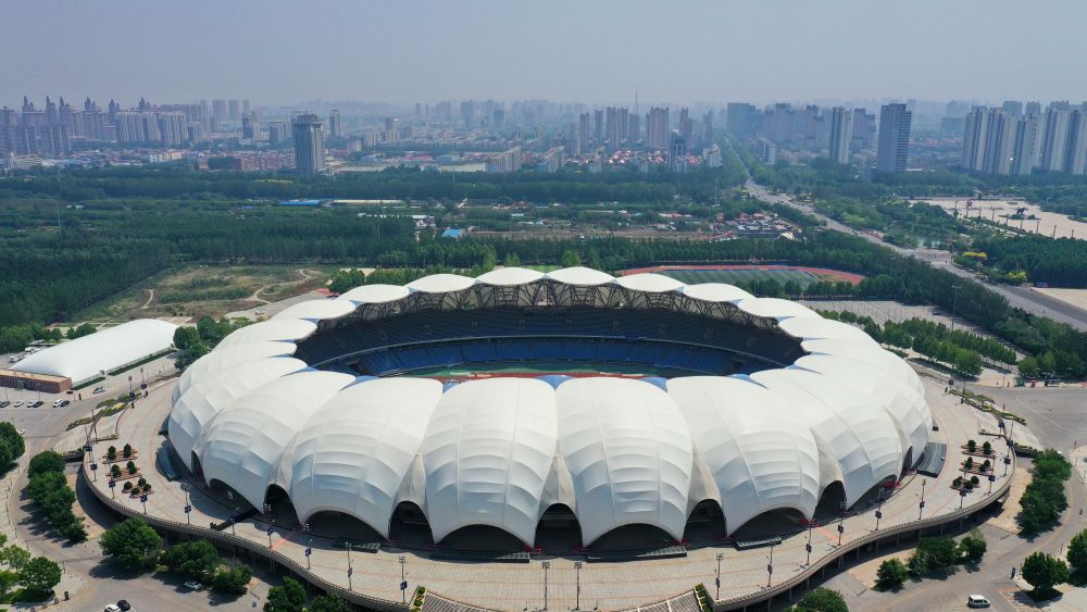↑沧州市体育场(5月16日摄,无人机照片)。