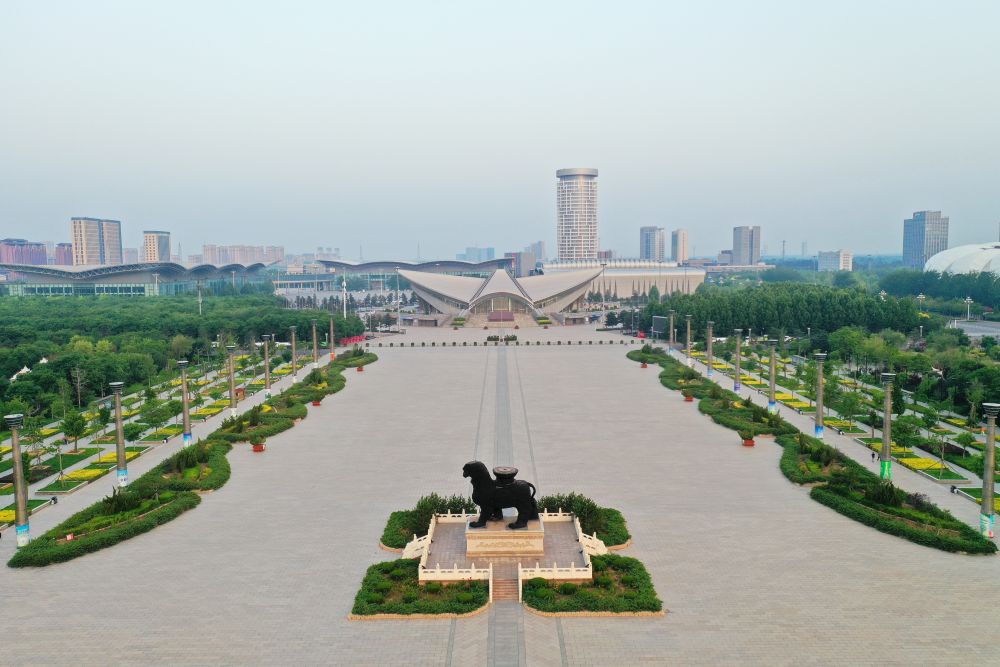 ↑沧州市百狮园一带景色(5月16日摄,无人机照片)。