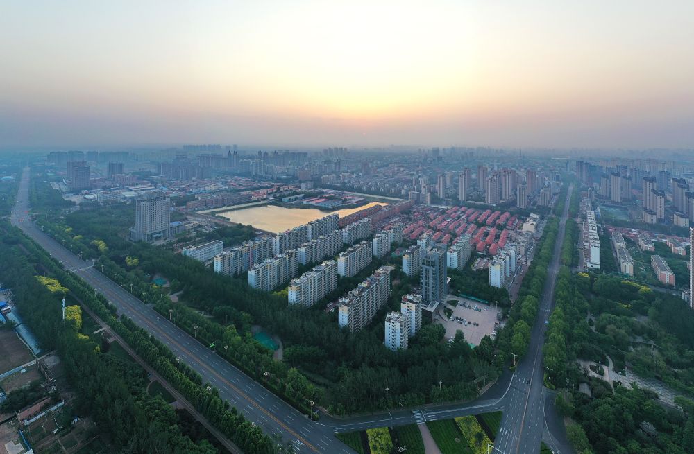 ↑晨光中的沧州市区(5月16日摄,无人机照片)。
