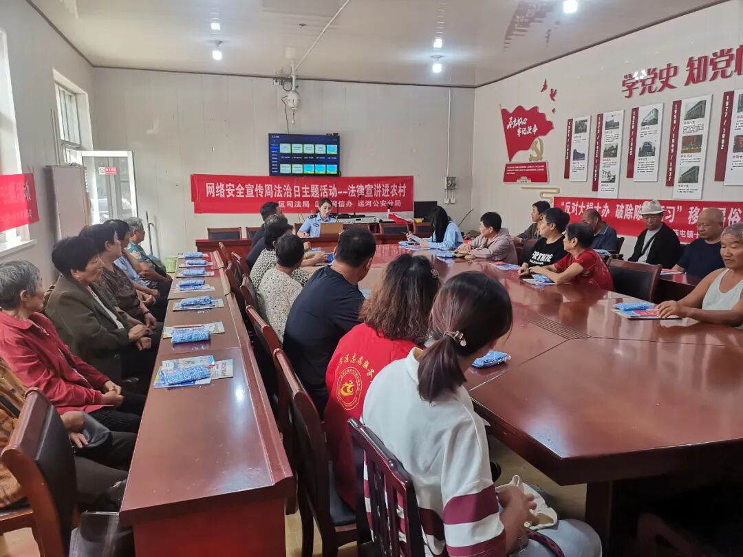 2023年网络安全宣传周活动已启动,9月14日是网络安全宣传周法治日,区司法局为助力乡村振兴,推动普法惠农专项行动,联合区委网信办、运河公安分局到南陈屯镇十二户村开展法律宣讲进农村活动。